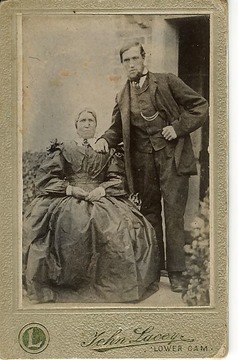 (My mother identified this photograph as her great grandparents. From the ladies dress and hairstyle this photo would date to early 1860s. Henry died in 1856 so it would have to be before this. If not then it could be Elizabeth and her son Thomas and would have to be later)